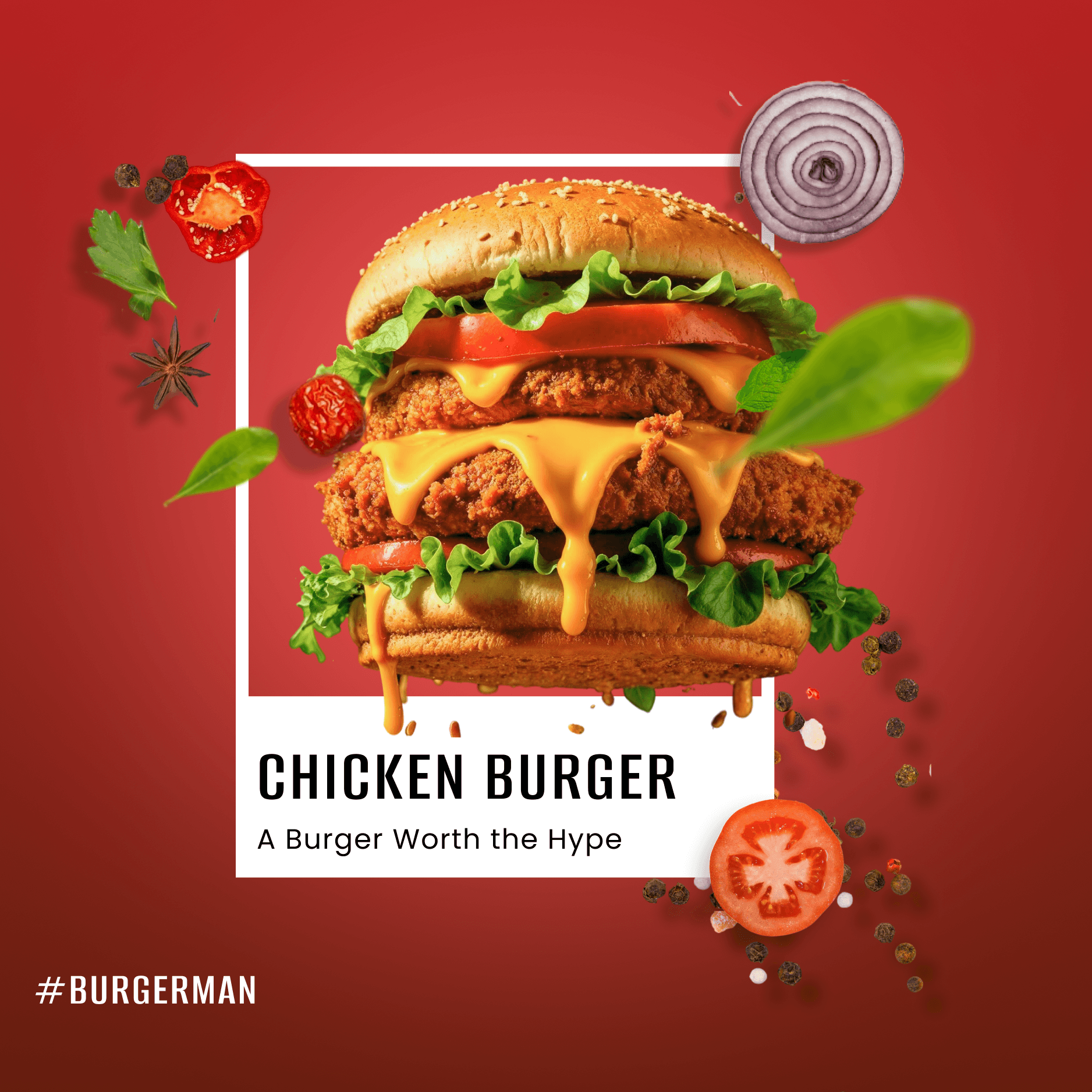 Designed fun and appetizing visuals for Burgerman, using bold colors, playful graphics, and tempting food imagery to capture the brand’s energetic and flavorful vibe.